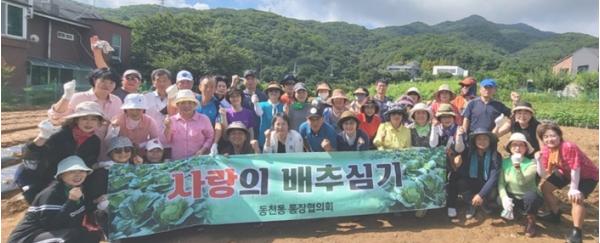 용인특례시 수지구 동천동은 통장협의회 회원 등 46명이 지난해에 이어 올해도 ‘사랑의 배추심기’ 행사를 열었다고 27일 밝혔다.