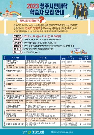 청주시는 ‘2023년 청주시민대학’학습자를 모집한다고 27일 밝혔다.