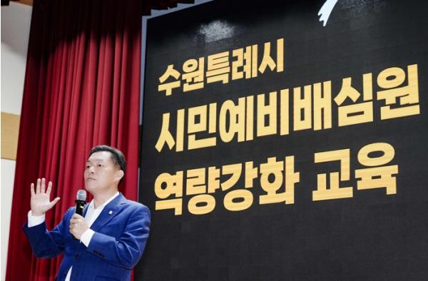 교육에 앞서 이재준 수원특례시장은 “수원시는 하루 민원이 1200~2000건에 이를 정도로 해결해야 할 갈등 사안이 많다”며 “이해 당사자가 해결할 수 없는 갈등을 해결해 주는 시민예비배심원 제도를 활성화하겠다”고 말했다.