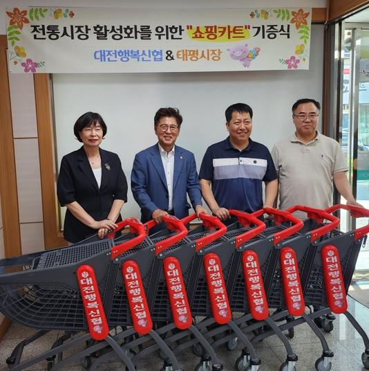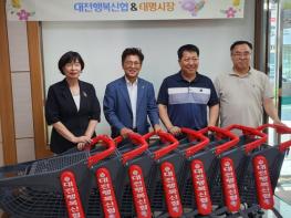 대전 중구 태평1동은 대전행복신협에서 전통시장 활성화를 위한 태평시장 쇼핑카트 30대(550만 원 상당)를 태평시장 상인회에 후원했다고 밝혔다.