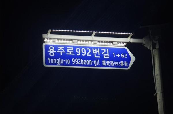 또 기존의 도로명판을 제거하지 않고 부착하는 방식이어서 설치가 간편하고, 친환경에너지를 활용해 낮 시간대에 태양에너지를 충전한 후 야간에 점등하므로 경제성도 뛰어나다.