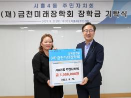 금천구는 8월 22일 시흥4동 주민자치회에서 장학금 300만 원을 재단법인 금천미래장학회에 기탁했다고 밝혔다.