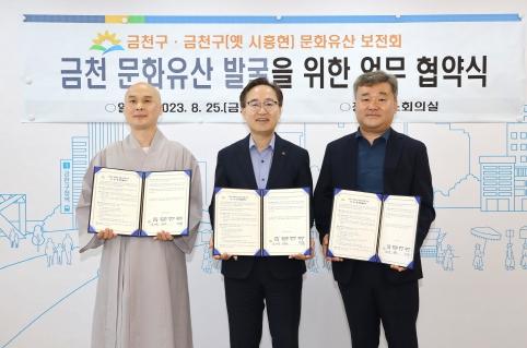 유성훈 금천구청장은 “금천구는 4세기 말 고구려 영토로 편입된 이후 조선시대 금천현으로 이어져 온 역사 깊은 도시다”라며, “이번 협약을 계기로 민관 협치를 통해 금천의 문화유산의 가치를 재조명하고, 역사적 정체성을 확립하겠다”라고 전했다.