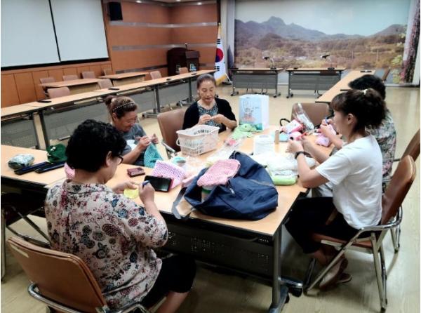 ‘뜨개반’은 축제 준비를 하며 적성면 관내 취약계층 분들을 위한 목도리를 한땀 한땀 정성스레 만들고 있다.