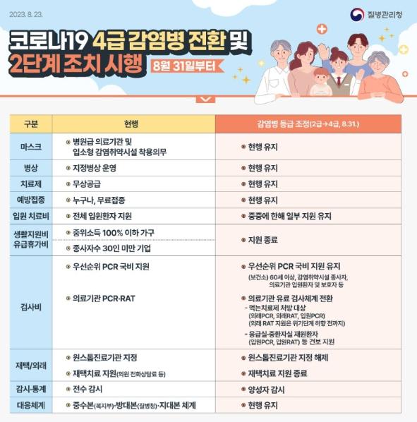 시는 코로나19의 질병 위험도가 하락함에 따라 8월 31일 기점으로 코로나19를 4급 감염병에 따른 2단계 조치를 시행한다.