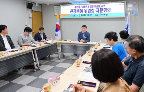 7월 31일 해운대구 관광문화진흥위원, 일자리위원, 특구추진위원, 해수욕장협의회원 등 10명의 위원이 참석한 관광 자문회의에서는 해외 벤치마킹을 통한 ‘해운대 광장’ 활성화 방안 마련, 해운대구 관광센터(재단) 설립, K-컬처 르네상스 비전 선포, 문화관광 예산 규모 증대, ‘요트-숙박-음식점을 연계한 해운대 관광패스’ 도입 등 다양한 의견이 나왔다.