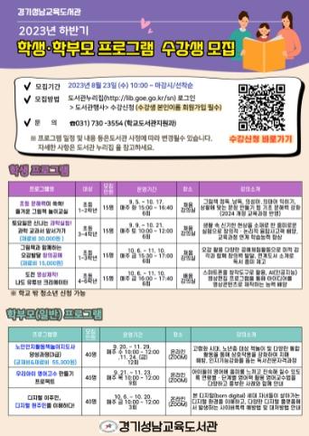여재구 경기성남교육도서관장은“이번 프로그램으로 학생 미래 역량 강화와 학부모 자녀교육을 지원하겠다”며 “앞으로도 지역 내 기관과 연계해 지식정보 취약계층의 성장을 돕겠다”고 말했다.