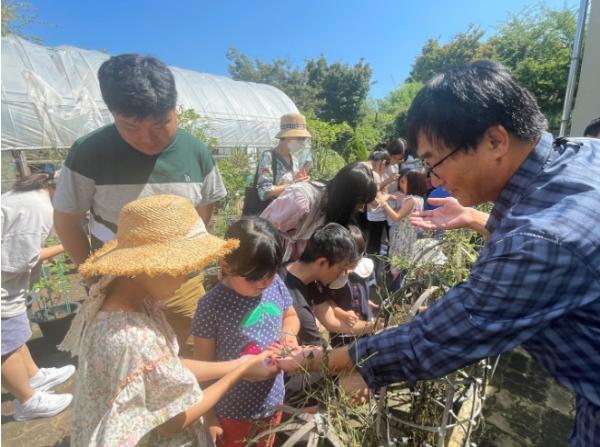 전인식 울산과학관 관장은 “미래세대인 학생들이 꼬리명주나비에 대해 배우고 직접 만져보고 날려보면서 자연생태보전 의식을 키우길 바란다”고 말했다.'사진제공'
