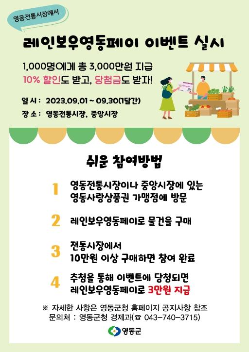영동군이 지역화폐 ‘레인보우영동페이’ 특별 이벤트를 시행한다.