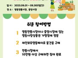 영동전통시장과 영동중앙시장의 영동사랑상품권 가맹점에서 한 달간 누적 사용액 10만원 이상이면 자동 응모된다.
