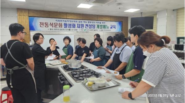 이번 교육은 지난 7월 전통식문화 활성화 지원 컨설팅 용역 중간 보고회를 통해 선정된 메뉴의 상품화를 위한 기술 전수 교육으로 디저트류 5종, 비빔밥 2종에 대한 메뉴 개발자의 시연 및 실습형의 교육이 진행될 예정이다.
