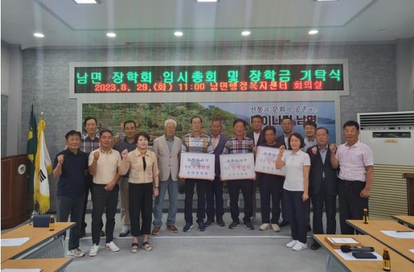 남면 장학회는 29일 남면행정복지센터 회의실에서 임시총회를 개최하는 한편, 700만원의 기금을 기탁 받았다.