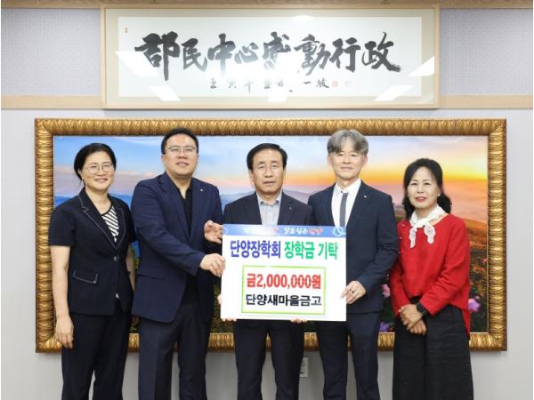 단양새마을금고는 지난 29일 단양군청을 찾아 명문 학교 육성 및 인재 양성을 위해 써달라며 장학금 200만 원을 기탁했다.