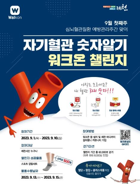 제천시보건소는 9월 첫째 주 심뇌혈관질환 예방관리주간을 맞아‘자기혈관 숫자알기’캠페인을 실시한다.