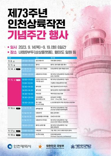 인천광역시와 해군은 9월 1일부터 19일까지 인천광역시 일대와 인천항 수로에서 『제73주년 인천상륙작전 전승행사』를 개최한다.