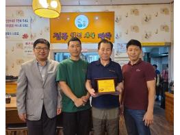 파주시 문산읍은 30일 재능기부 행복나눔가게 6호점 전주웰빙새알팥죽에 감사패를 전달했다.