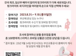 선호도 조사는 부산시와 부산교통공사, 다가치키움 누리집 등 다양한 매체를 통해 진행된다. 조사 항목은 ▲수신기 디자인 ▲모바일 앱 디자인 ▲핑크라이트 의견 수렴 등 총 3개 항목으로 구성돼 있다.