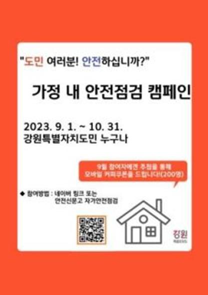 강원특별자치도는 생활 속 재난을 예방하기 위해 9월 1일부터 10월 31일까지 가정 내 안전점검 2차 캠페인을 실시한다.