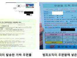 실제로 최근에는 불상의 범죄조직이 경기도 소속 공공기관으로 속여 가짜 우편물을 작성, 우체국으로 발송 시도한 사례가 있었고, 아파트에 침입해 가짜 우편물을 세대별 우편함에 놓고 가는 사례도 있었다.