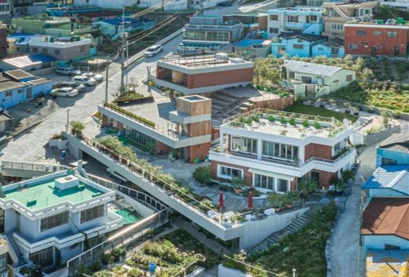 올해 부산다운 건축상 대상을 수상한 ‘베리베리굿 봉산센터(영도 봉산마을 코워킹스페이스)’는 게스트하우스, 마을카페, 공유주방, 다목적실 등을 갖추고 있으며, 내외부로 확장하는 다양한 커뮤니티 공간은 녹지가 부족한 마을의 공원이 되고, 마을 행사 시 주민들이 소통할 수 있는 장으로 활용할 수 있다.