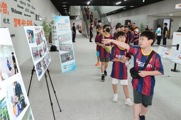전시회 개회에 앞서 지난 31일 안전교육을 위해 체험관을 찾은 수원 효천초등학교 학생 70여 명은 전시 물품을 관람하며 높은 관심을 보였다.