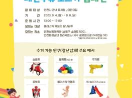 인천광역시는 2023년 제15회 자원순환의 날(9월 6일)을 맞아 9월 4일(월)부터 9월 8일(금)까지 유치원과 어린이집을 대상으로 폐완구류 모으기 캠페인을 추진한다고 밝혔다.