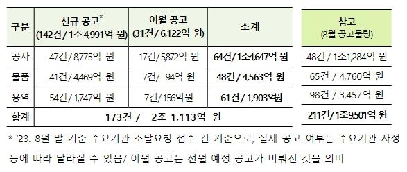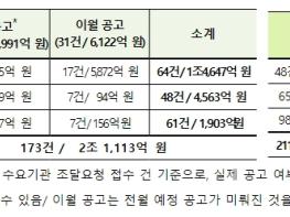 이 가운데 신규 공고는 142건, 1조 4,991억 원, 이월 공고는 31건, 6,122억 원 규모다.