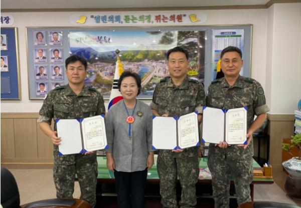 김상희 의장은 “일격여단 영주봉화대대가 이번에도 재난 극복을 위해 앞장서 지원을 해준 데 대해 다시한번 감사의 마음을 전하며, 수해복구 기간 70대 노인을 신속하게 구조하는 등 앞으로도 봉화군 지역방위에 기여함은 물론 각종 재난 발생 시에도 신속한 지원으로 군민의 큰 힘이 되어줄 것”을 당부했다.