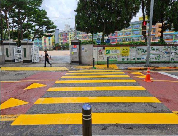 이번 사업은 운전자가 횡단보도 색깔만으로 어린이보호구역임을 명확하게 인식할 수 있도록 노란색으로 횡단보도를 색칠함으로써 안전한 통학환경을 제공하고자 추진됐다.