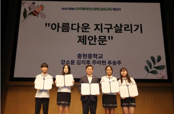 서혜승 학생 등 관내 초등학생과 고등학생 여덟 명으로 구성된 광명청소년예술단이 펼친 퍼포먼스는 환경파괴에 대한 자연의 경고를 담았다. 또한 환경보호 동아리 활동을 활발히 하는 강소윤 학생 등 충현중학교생 네 명이 ‘아름다운 지구 살리기’라는 제목의 탄소중립 청소년 제안문을 낭독하고 이날 개강식에 참석한 박승원 시장에게 전달했다.