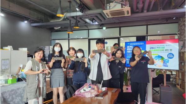 시 기후에너지센터는 지난 1일 광명형 넷제로에너지카페 중 한 곳인 ‘카페 담다’에 충현고등학교 1학년 학생들이 방문해 ‘슬기로운 소비생활’을 주제로 플라스틱 소비를 줄이는 방법을 체험했다고 밝혔다.