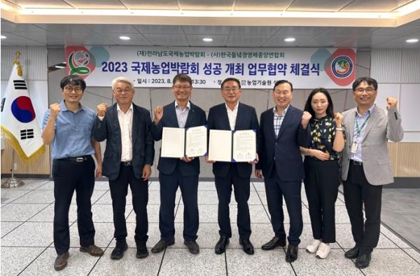 (재)전라남도국제농업박람회는 최근 (사)한국들녘경영체중앙연합회와 ‘2023 국제박람회’ 성공개최, 상호 유기적 협력체계 마련을 위해 업무협약을 체결했다.