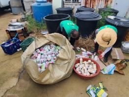이날 작업에 참여한 새마을 지도자들은 여러 과수농가에서 모인 농약병을 모두 일일이 확인한 뒤 일부 섞여 있는 일반 페트병과 농약병을 분류하는 작업을 시작으로 수월한 수거가 이루어질 수 있도록 작업을 진행했다.