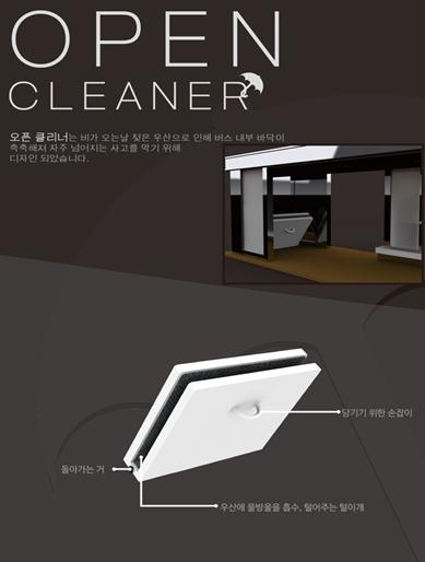 중·고등부 최우수는 'Open Cleaner'(성도원)로, 버스 바닥에 우산 빗물 털이개를 설치해 미끌림 사고를 방지하는 참신하고 실용적인 디자인으로 높은 점수를 받았다.