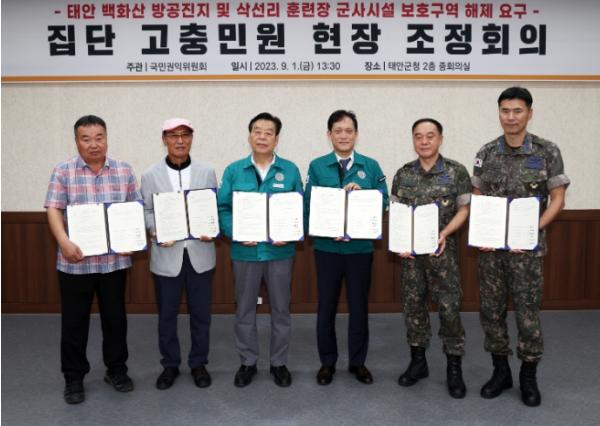 군은 지난 1일 군청 중회의실에서 가세로 군수와 국민권익위원회 김태규 부위원장, 태안군 개발위원회 최근웅 위원장, 지역 주민 등이 참석한 가운데 열린 ‘백화산·삭선리 집단고충민원 국민권익위 주관 조정회의’ 결과 삭선리 일대 74만 2198㎡ 면적에 대한 통제보호구역 해제가 최종 결정됐다고 밝혔다.