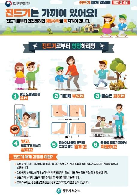 한편, 원주시보건소는 진드기 매개 감염병 고위험군인 농업인 등에게 보건소 또는 읍면동행정복지센터를 통해 진드기 기피제를 배부하고 있다.