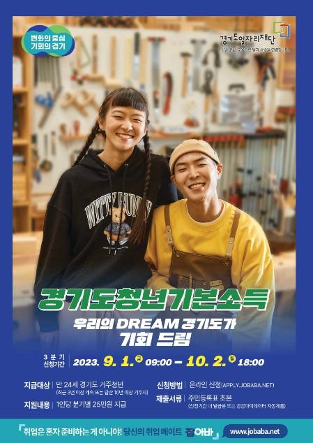 수원시가 만 24세 청년을 대상으로 하는 ‘2023년 3분기 경기도 청년 기본소득’ 지급 신청을 10월 2일 오후 6시까지 받는다.