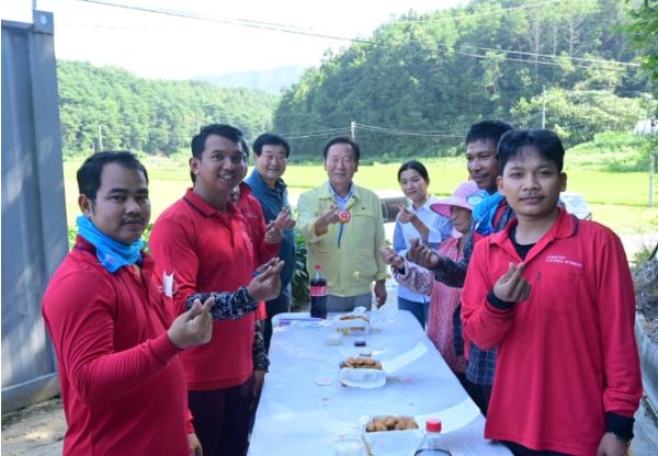박현국 봉화군수는 8월 17일 입국한 공공형 외국인 계절근로자들을 격려하고 애로사항을 청취하기 위해 4일 농작업 현장을 방문했다.