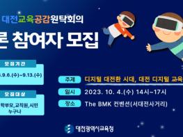 대전광역시교육청은 10월 4일 오후 2시에 더 BMK 컨벤션에서 ‘디지털 대전환 시대, 대전 디지털 교육의 방향’이라는 주제로 개최되는 '2023년 제2회 대전교육공감원탁회의'에 참여할 토론참여자를 모집한다고 밝혔다.