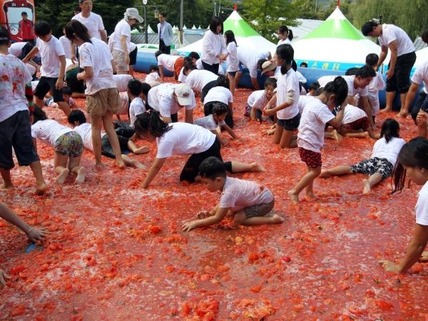 토마토 속 황금반지를 찾아라는 장수군의 대표 농특산물 중 하나인 토마토를 활용한 행사로 토마토를 던지고 밟고 으깨며 토마토 속에서 황금 반지를 찾는 놀이 프로그램이다.