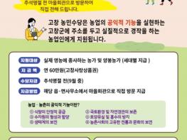 고창군은 군민들의 편의 제공을 위해 찾아가는 행정서비스로 농민 공익수당 60만원을 고창사랑상품권으로 추석 명절 전에 지급한다.
