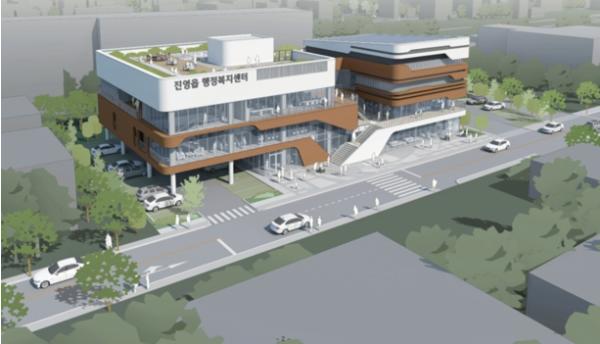 진영읍 행정복지센터 신축은 이번 당선안을 토대로 2024년 4월까지 설계를 마무리하고 2026년 6월 완공 예정이다.