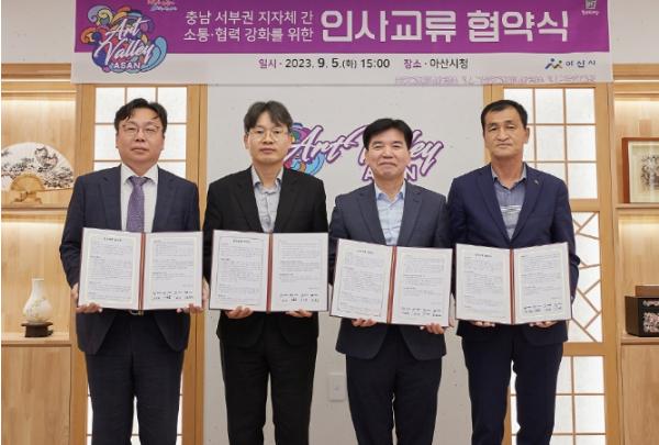 예산군은 지난 5일 아산시청에서 인접 지자체와 상생 발전 및 협력 강화를 위한 인사교류 협약을 체결했다.