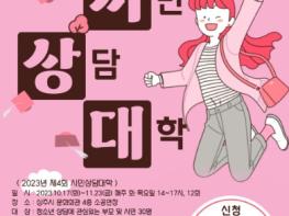 상주시청소년상담복지센터는 10월 6일까지 2023년 제4회 시민상담대학 교육신청자 30명을 선착순으로 모집한다.