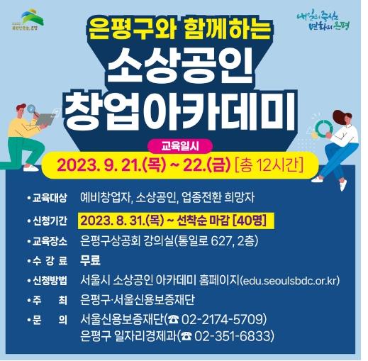 서울 은평구는 소상공인의 성공 창업을 지원하기 위한 ‘2023. 은평구 소상공인 창업아카데미’에 참여할 교육생 40명을 모집한다.