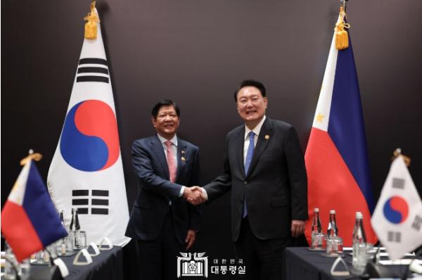 이번 회담에서 윤 대통령은 양국 관계 발전 방안에 대해 의견을 교환하는 한편, 2030년 부산 세계박람회에 대한 필리핀의 지지를 요청했다.
