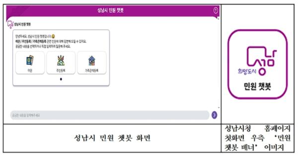 성남시청 홈페이지 첫 화면 우측에 있는 ‘민원 챗봇 배너’를 통해서 접속해도 된다.