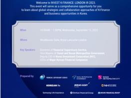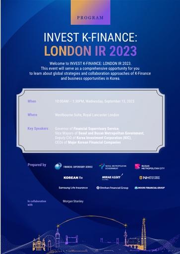 이번 투자설명회에서 주최 기관들은 영국 정부 관계자, 해외투자자 등을 대상으로 한국 금융산업의 강점과 투자매력, 그리고 한국의 금융중심지인 부산과 서울을 적극 홍보할 예정이다.