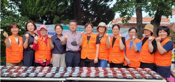 무더운 여름날 자원봉사자들이 구슬땀을 흘리며 손수 조리하여 취약계층에 전달하면서 건강한 여름을 보내도록 안부를 전했다.