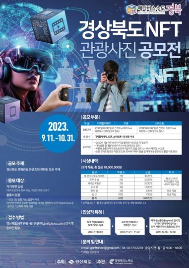 경북도는 NFT에 대한 범국민적 관심과 공감대를 높이기 위해 ‘경상북도 NFT 관광사진 공모전’을 9월 11일부터 진행한다고 밝혔다.